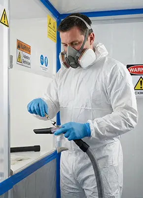 Small samples are carefully collected from suspected materials using approved safety procedures to prevent fibre release. The sampling area is controlled, and protective equipment is used throughout the process to minimise exposure risks to occupants and surrounding environments.